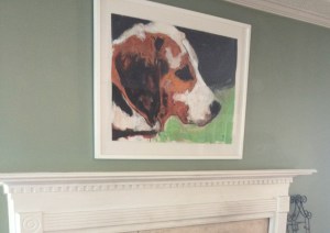 This painting of my dog Derby is in the place of honor over my fireplace.