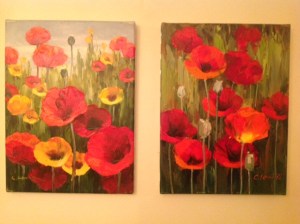 These are my poppy paintings. I bought them from a gallery around the corner. I don’t know the artist, and I didn’t buy them on a trip anywhere special. They make me smile. Sometimes it is just that simple.